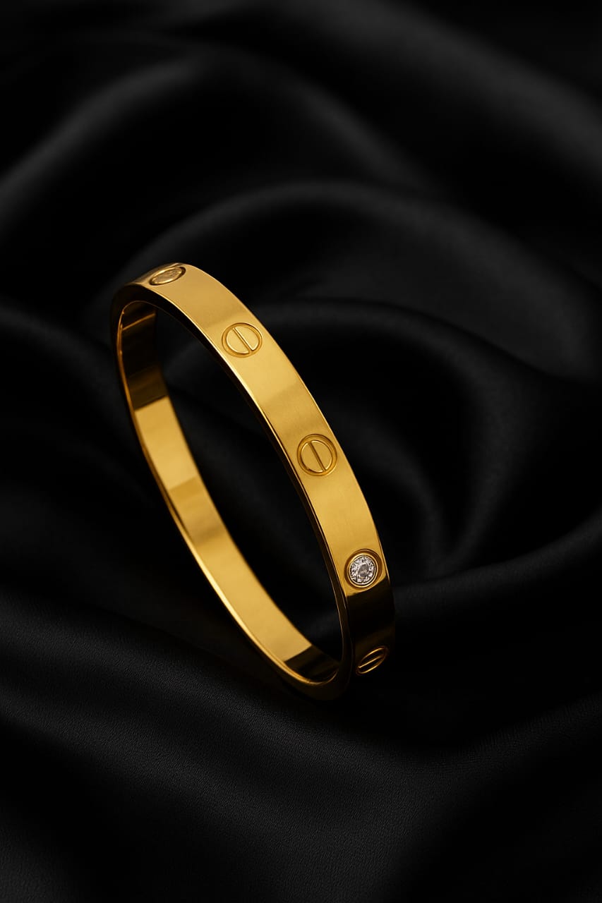 Luxury Inspired LOVE Style Stainless Steel Bracelet – Yellow Gold with Diamonds